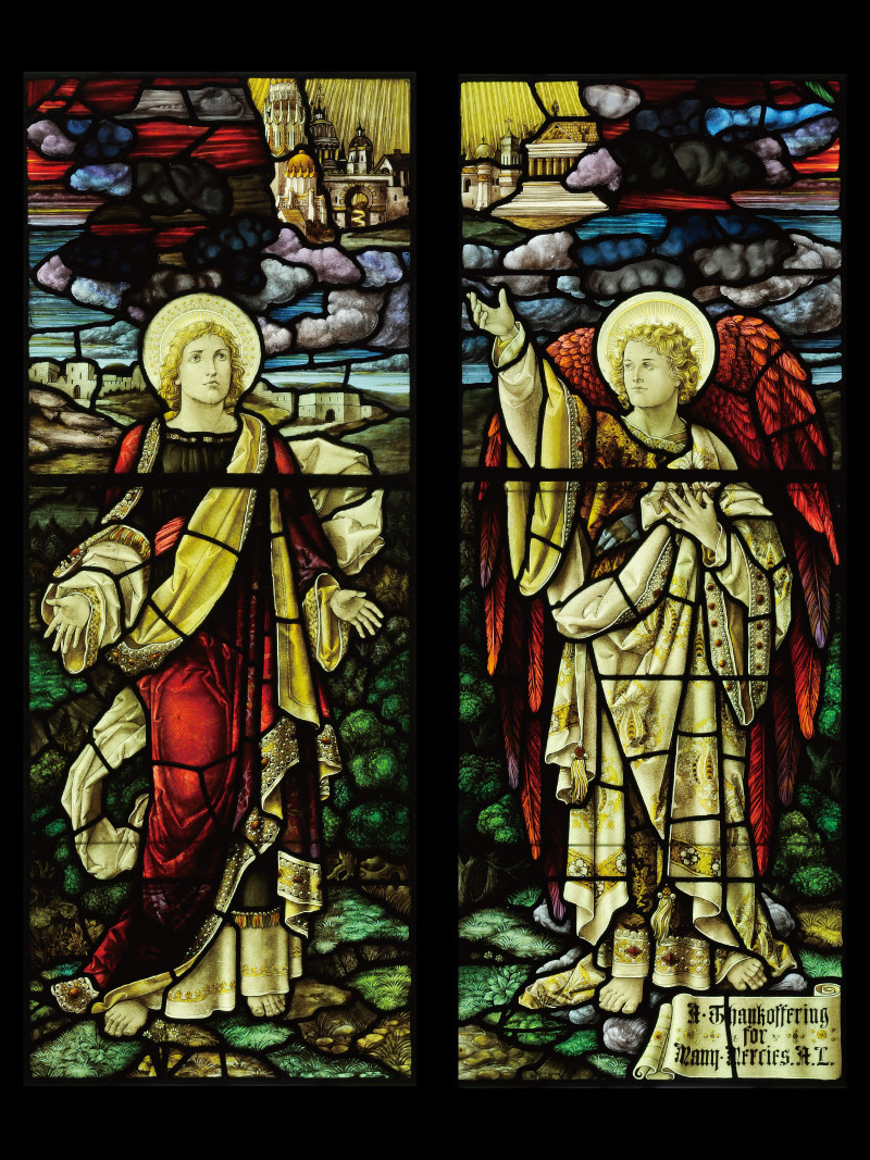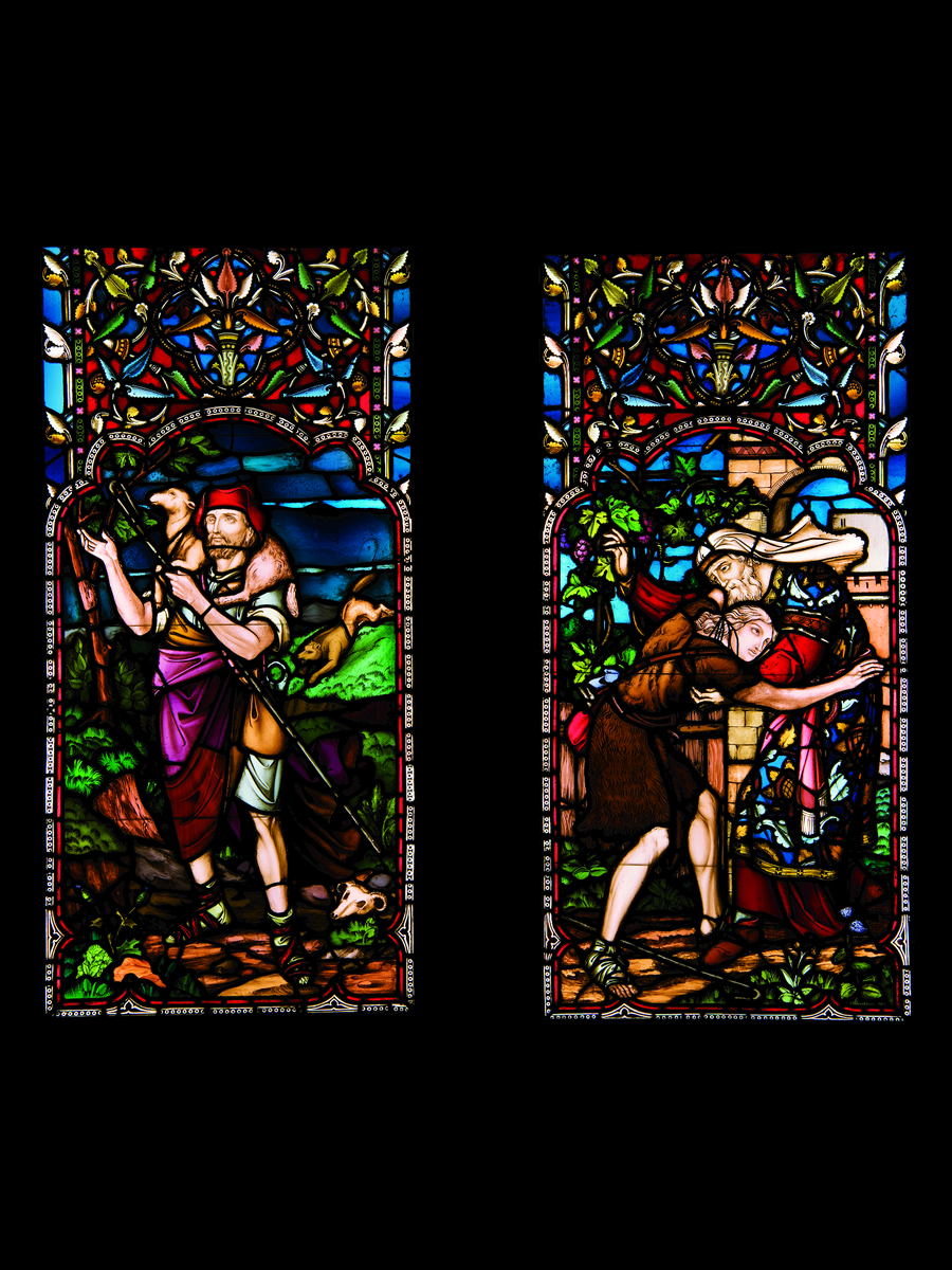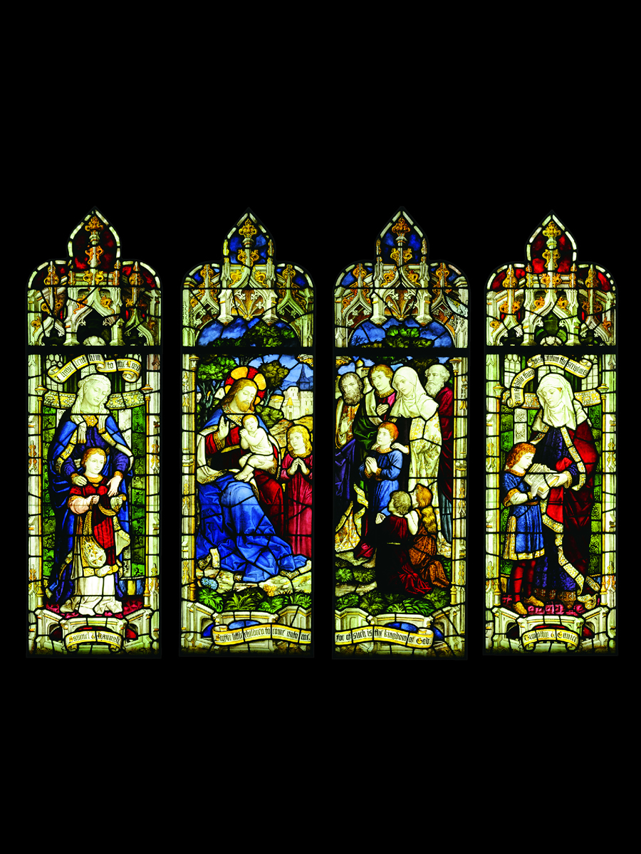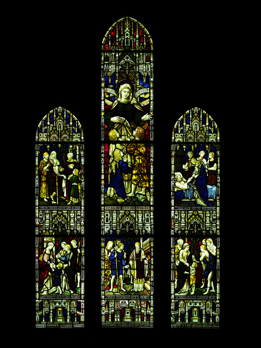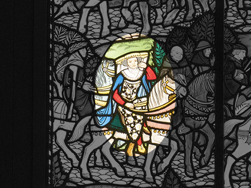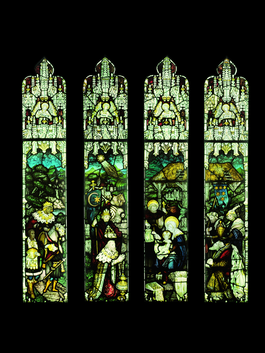 救世主の誕生を告げる星を見つけた東方の博士達が、イエスを礼拝するために贈物を持ってやってきた場面。ベツレヘム郊外の粗末な厩(うまや)には、聖母マリアと幼子イエス、カンテラを持つヨセフ、それを覗きこむ牛とロバが描かれている。背景には、ベツレヘムの街並みや彼らをイエスのもとに導いた輝く星が見える。