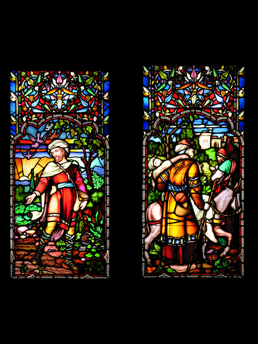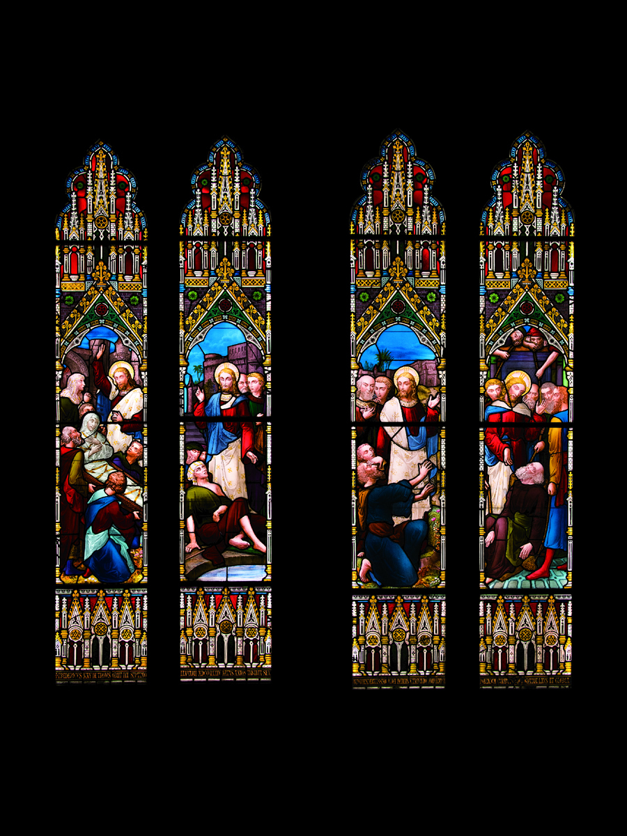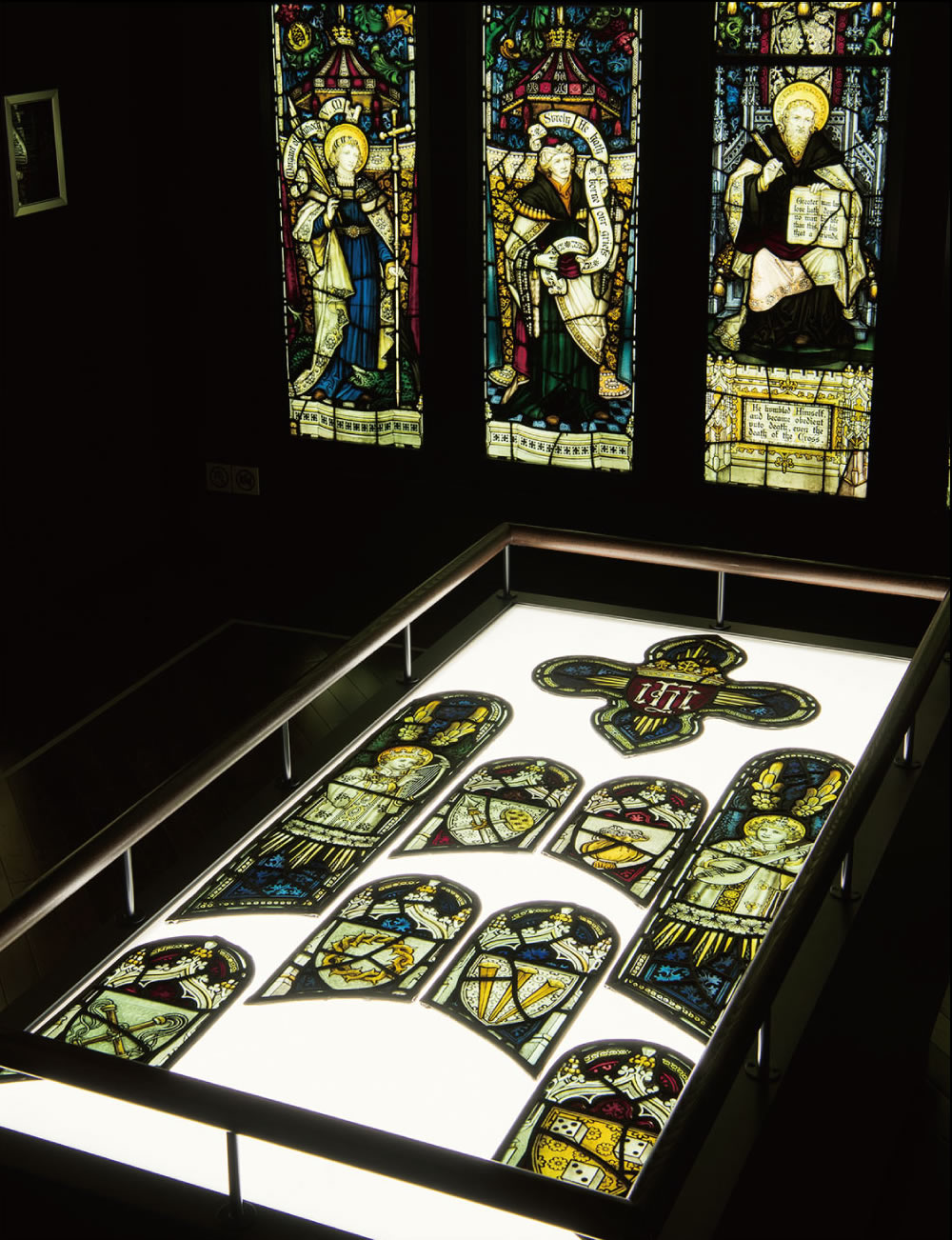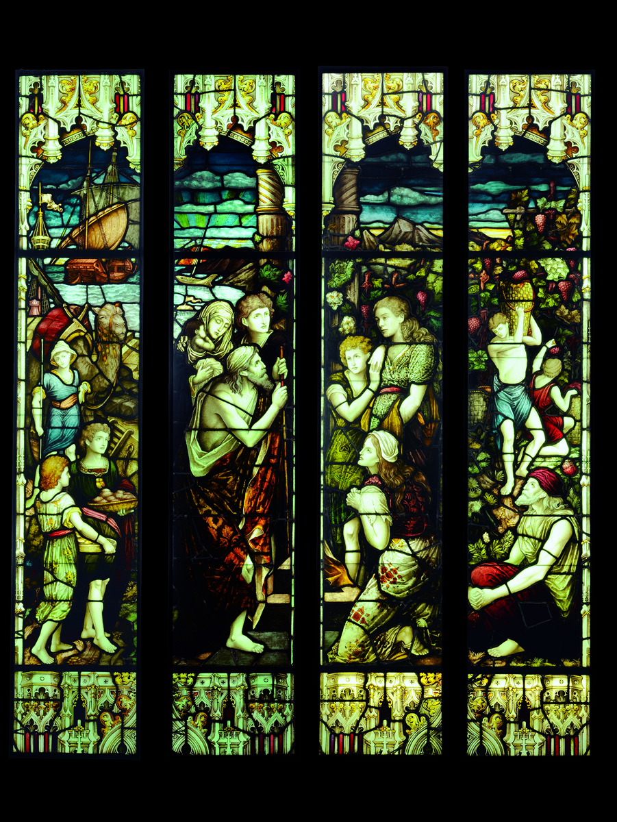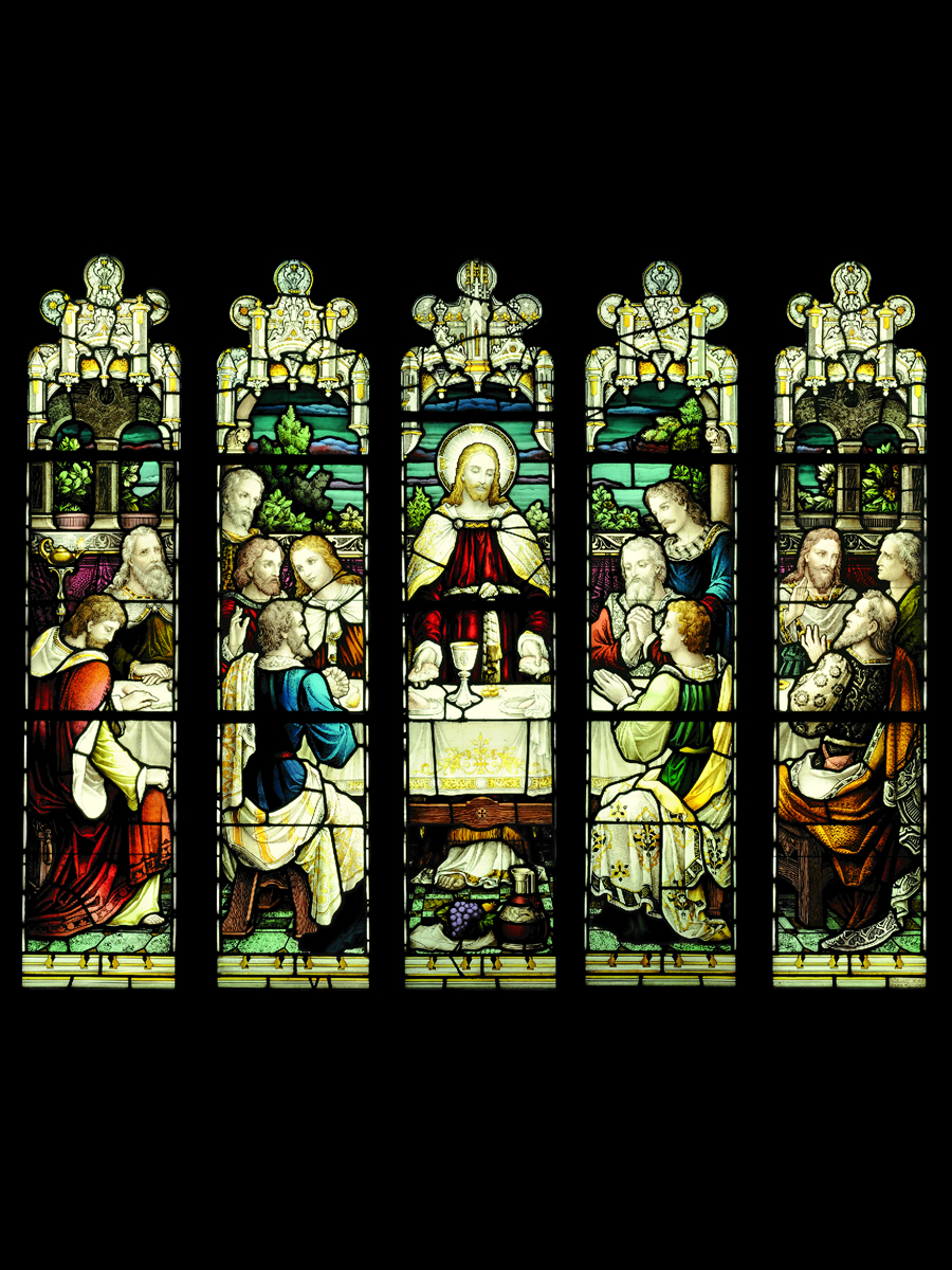 救世主の誕生を告げる星を見つけた東方の博士達が、イエスを礼拝するために贈物を持ってやってきた場面。ベツレヘム郊外の粗末な厩(うまや)には、聖母マリアと幼子イエス、カンテラを持つヨセフ、それを覗きこむ牛とロバが描かれている。背景には、ベツレヘムの街並みや彼らをイエスのもとに導いた輝く星が見える。