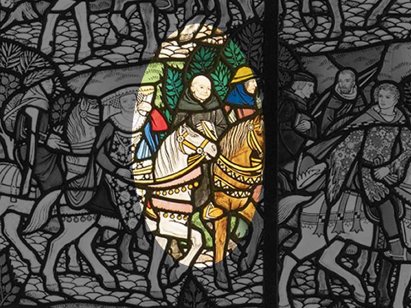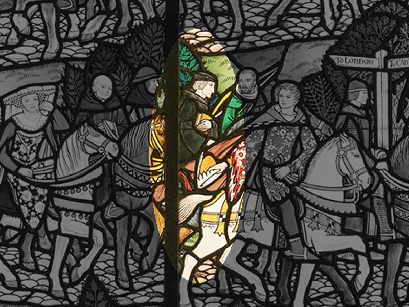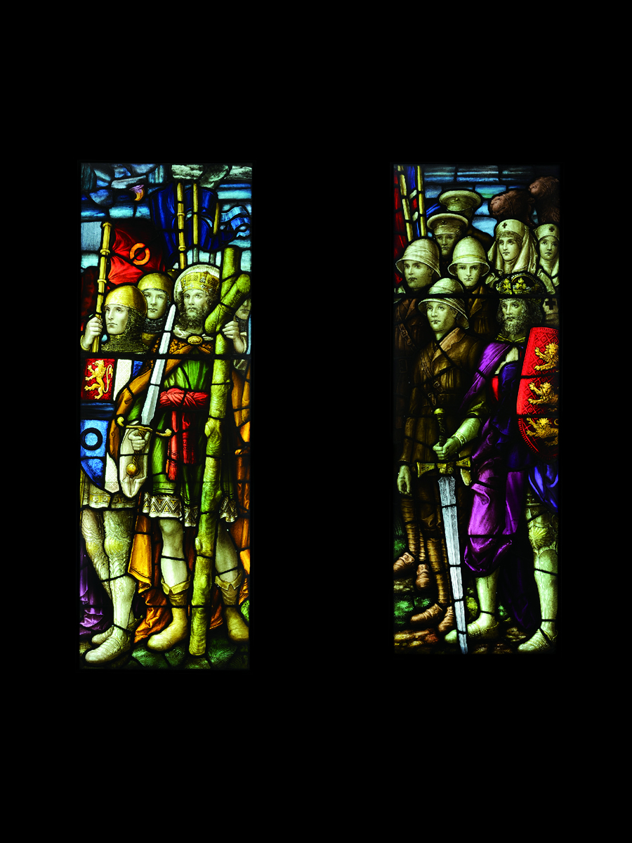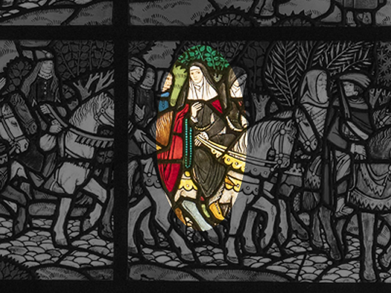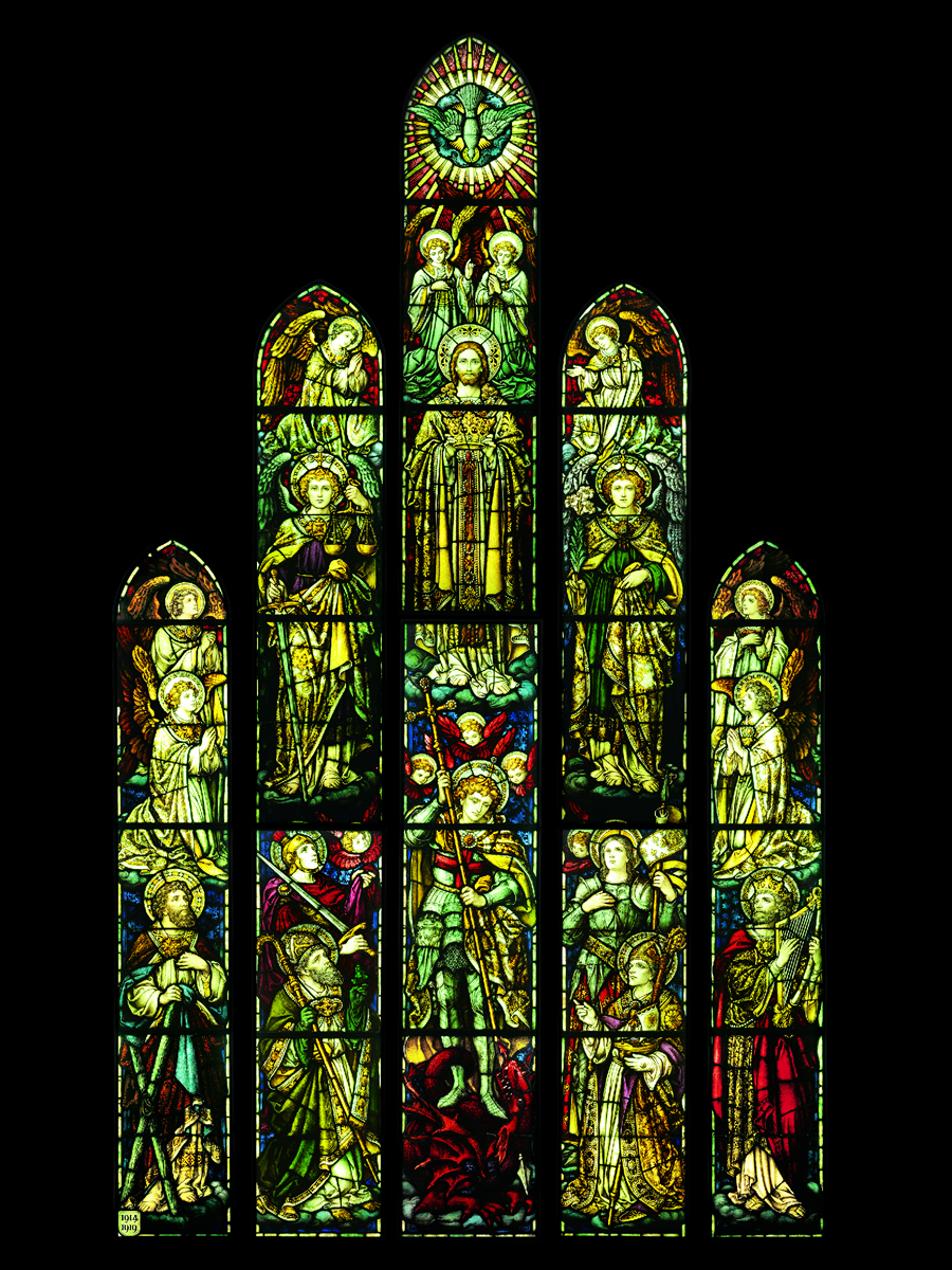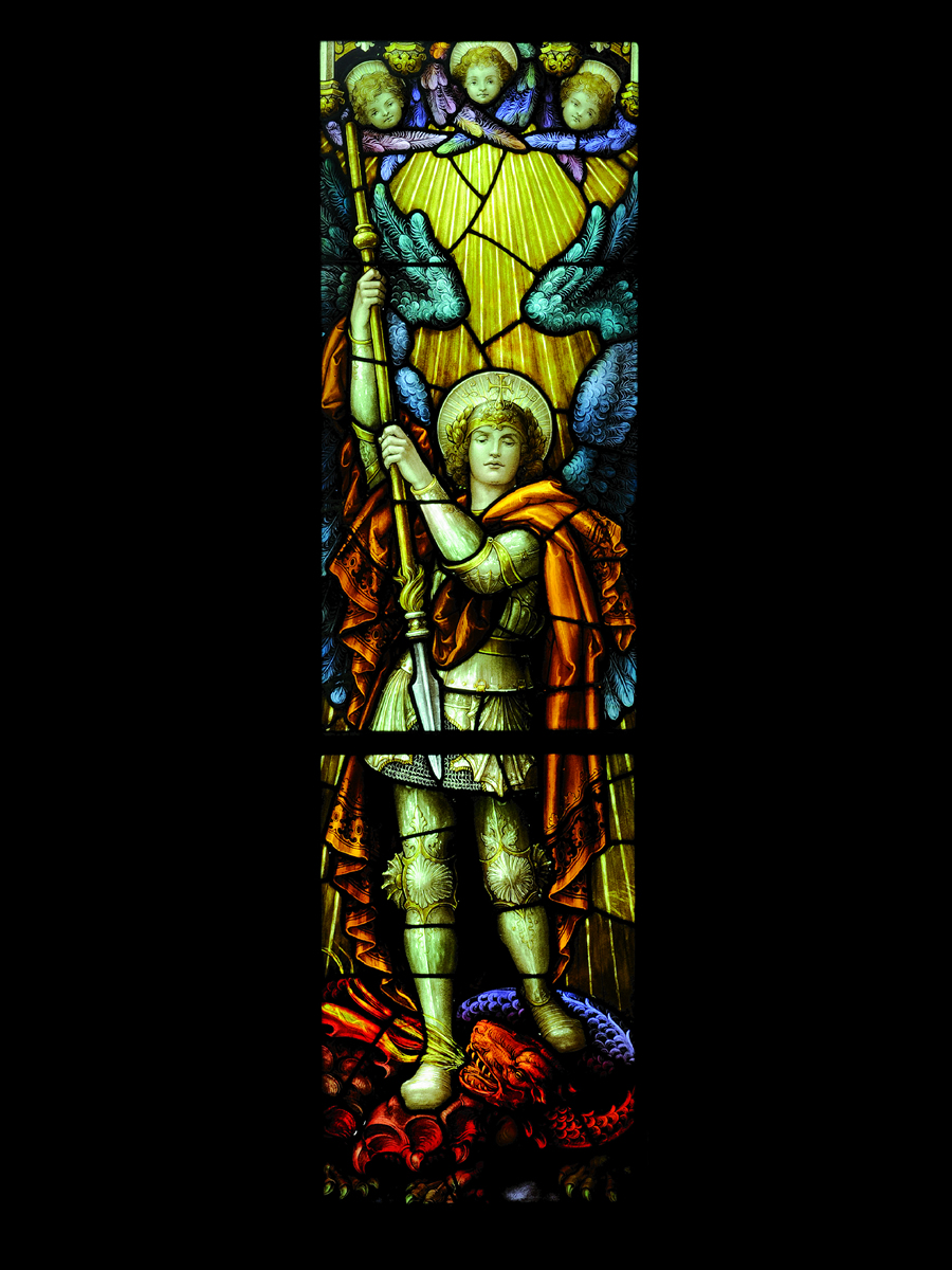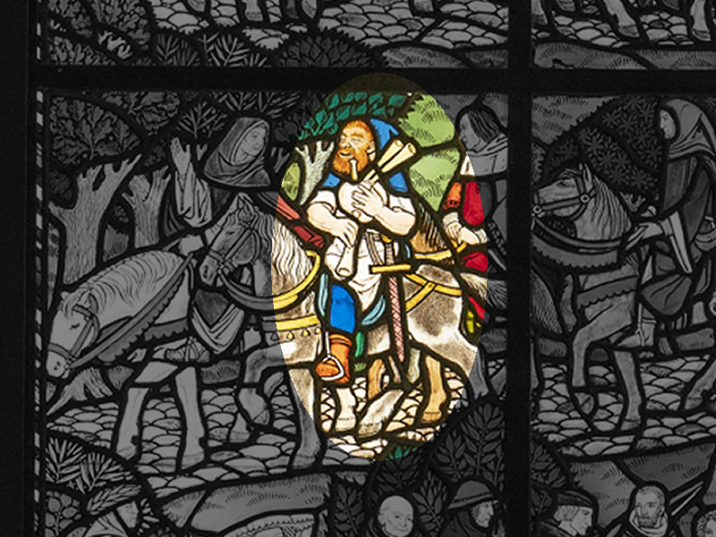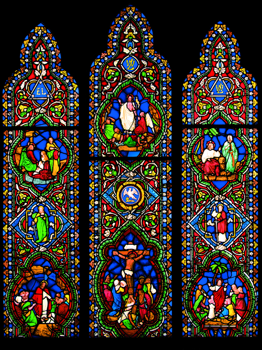 救世主の誕生を告げる星を見つけた東方の博士達が、イエスを礼拝するために贈物を持ってやってきた場面。ベツレヘム郊外の粗末な厩(うまや)には、聖母マリアと幼子イエス、カンテラを持つヨセフ、それを覗きこむ牛とロバが描かれている。背景には、ベツレヘムの街並みや彼らをイエスのもとに導いた輝く星が見える。